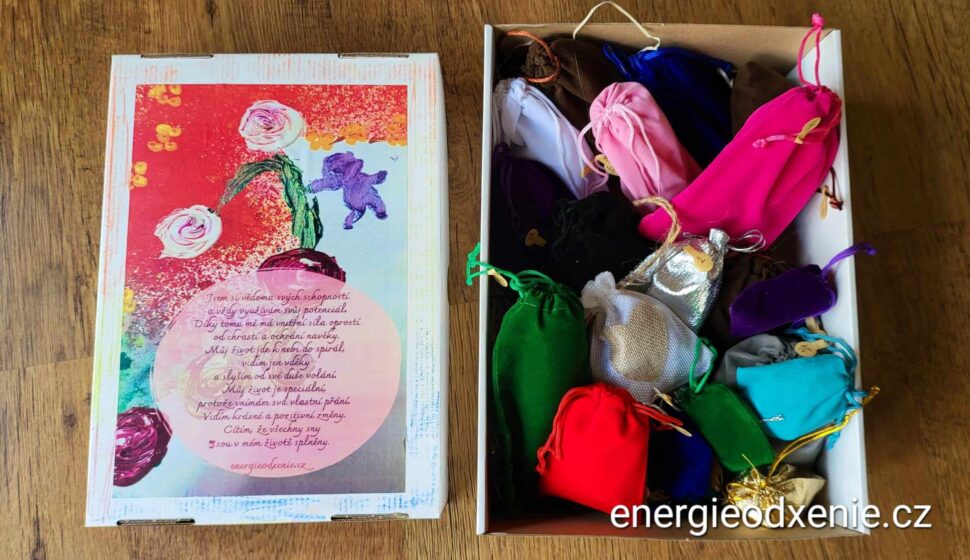 24 krásných, hodnotných a praktických dárků v semišových barevných pytlíčcích. To je Kouzelná krabice.