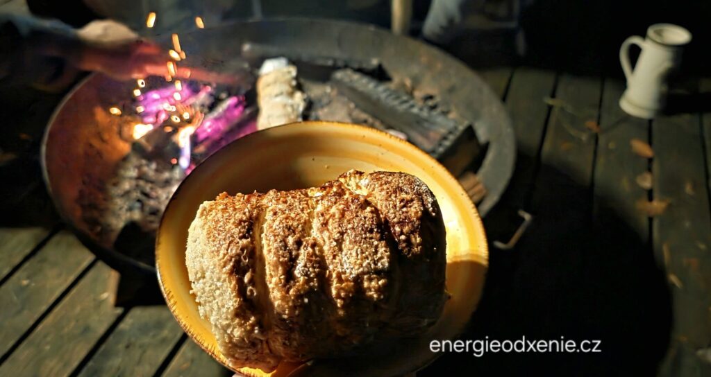 • 1 žloutek (bílko necháme na potření těsta před pečením na ohni)