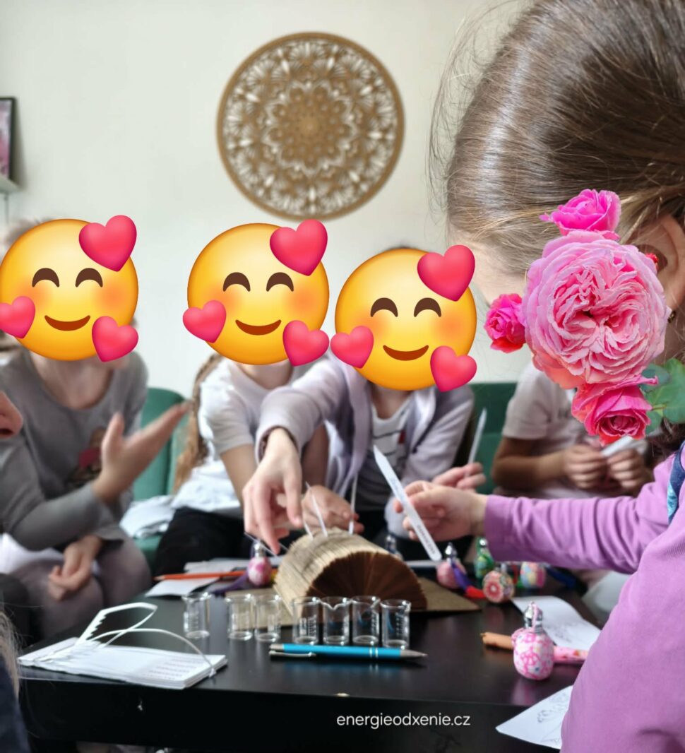 Děti, podle mé dlouholeté zkušenosti aromaterapeutky, udrží pozornost při míchání parfémů maximálně přibližně jednu hodinu.